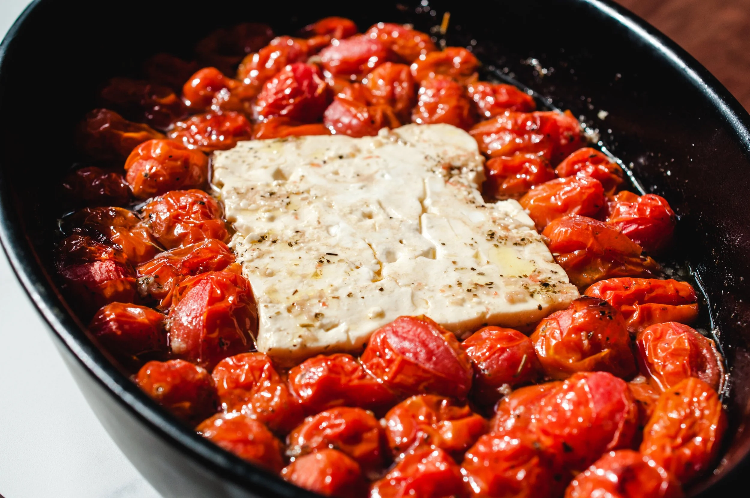 This is my take on the feta pasta that has been a viral phenomenon; I can't believe it's taken me this long to try it. It's downright delicious. Super creamy and full of bright, rustic flavors. It's restaurant-worthy, and happens to be super easy to make.