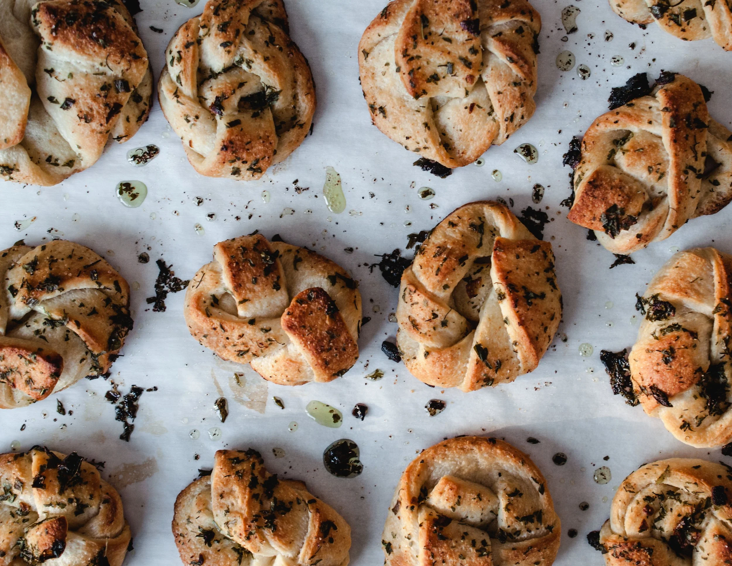 After baking, I like to brush them again with the remnants of the olive oil mixture just to give them a fresh shine.